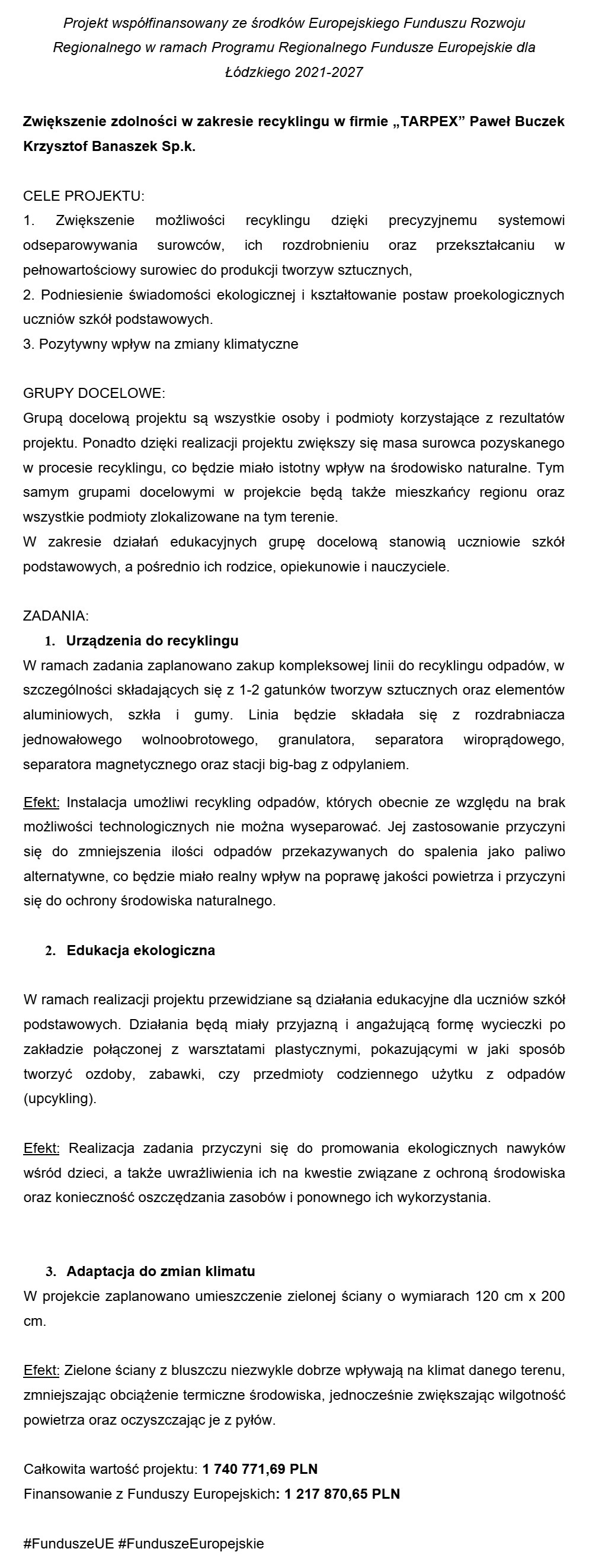 "Tarpex" Paweł Buczek Krzysztof Banaszek Spółka Komandytowa